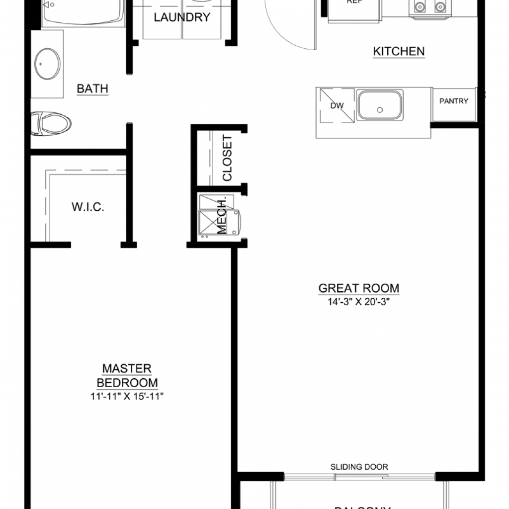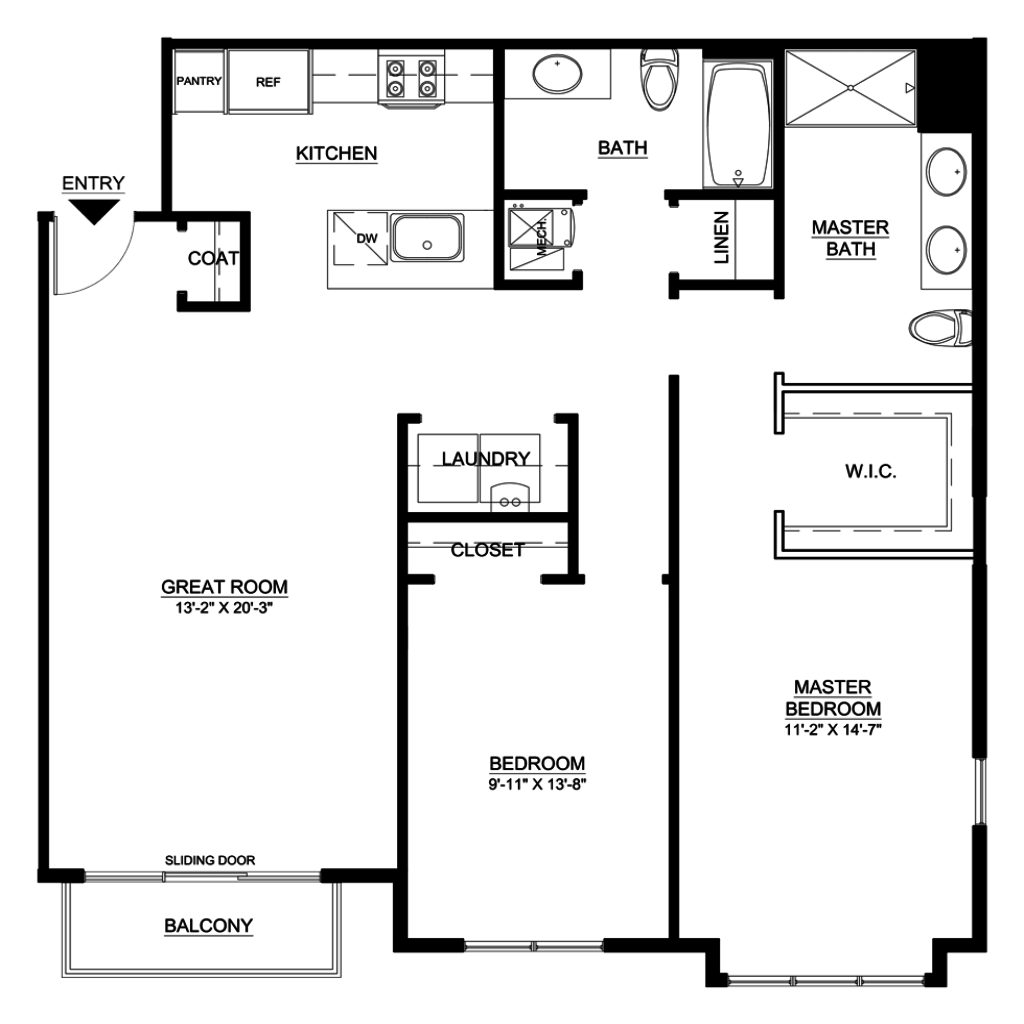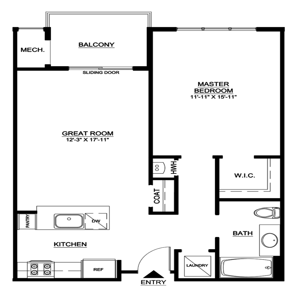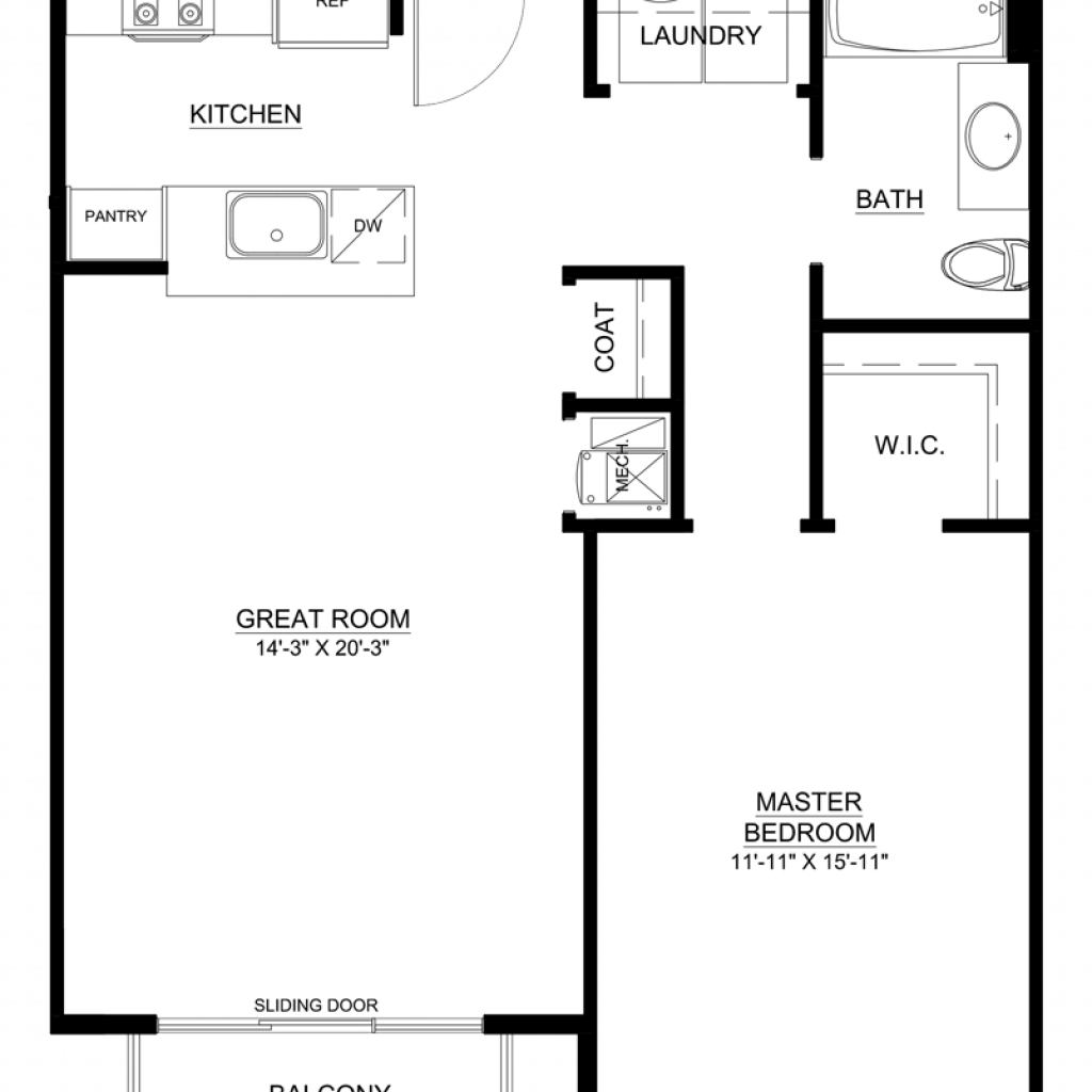 1 Bedroom, 1 Bath • 790 Sq. Ft.Print Floorplan