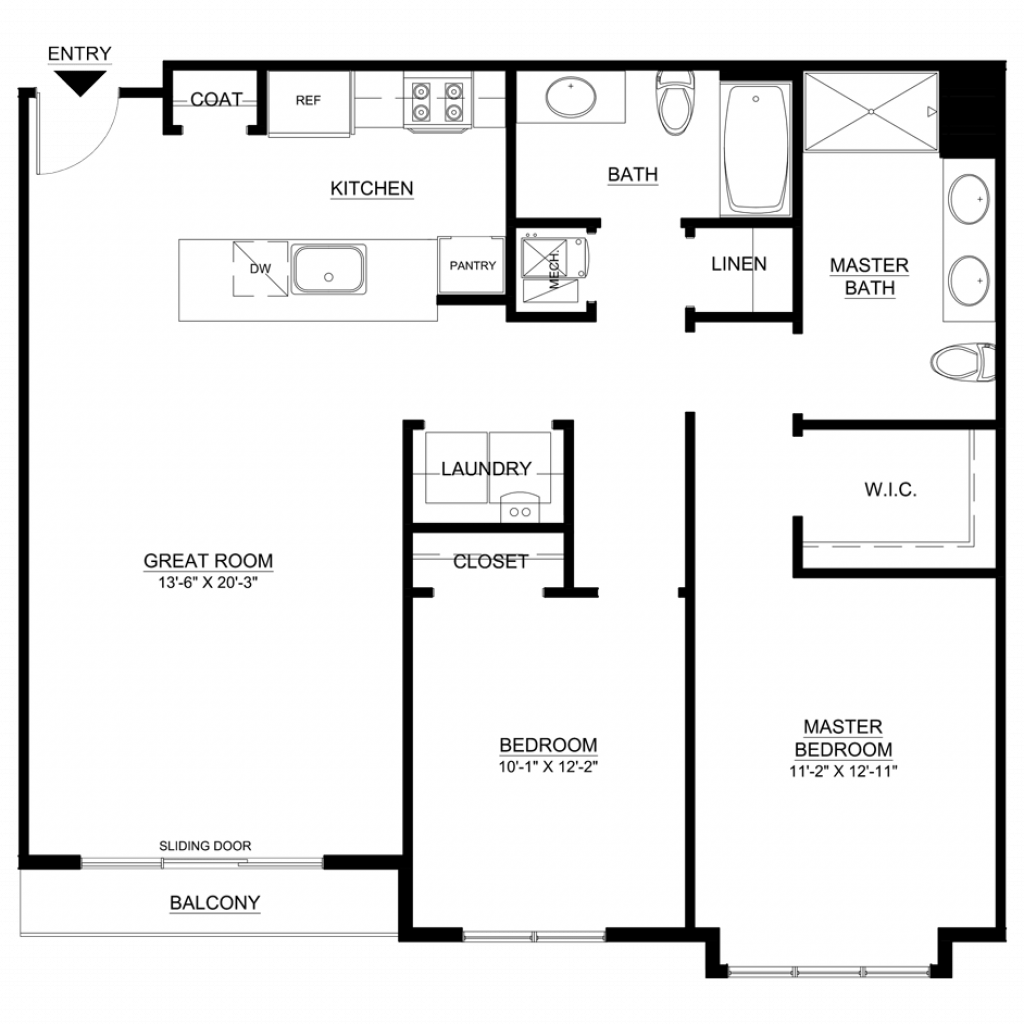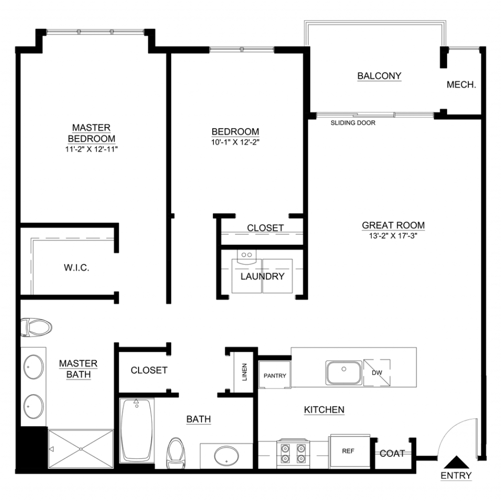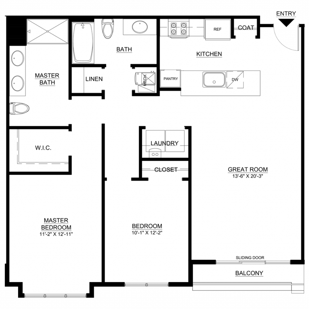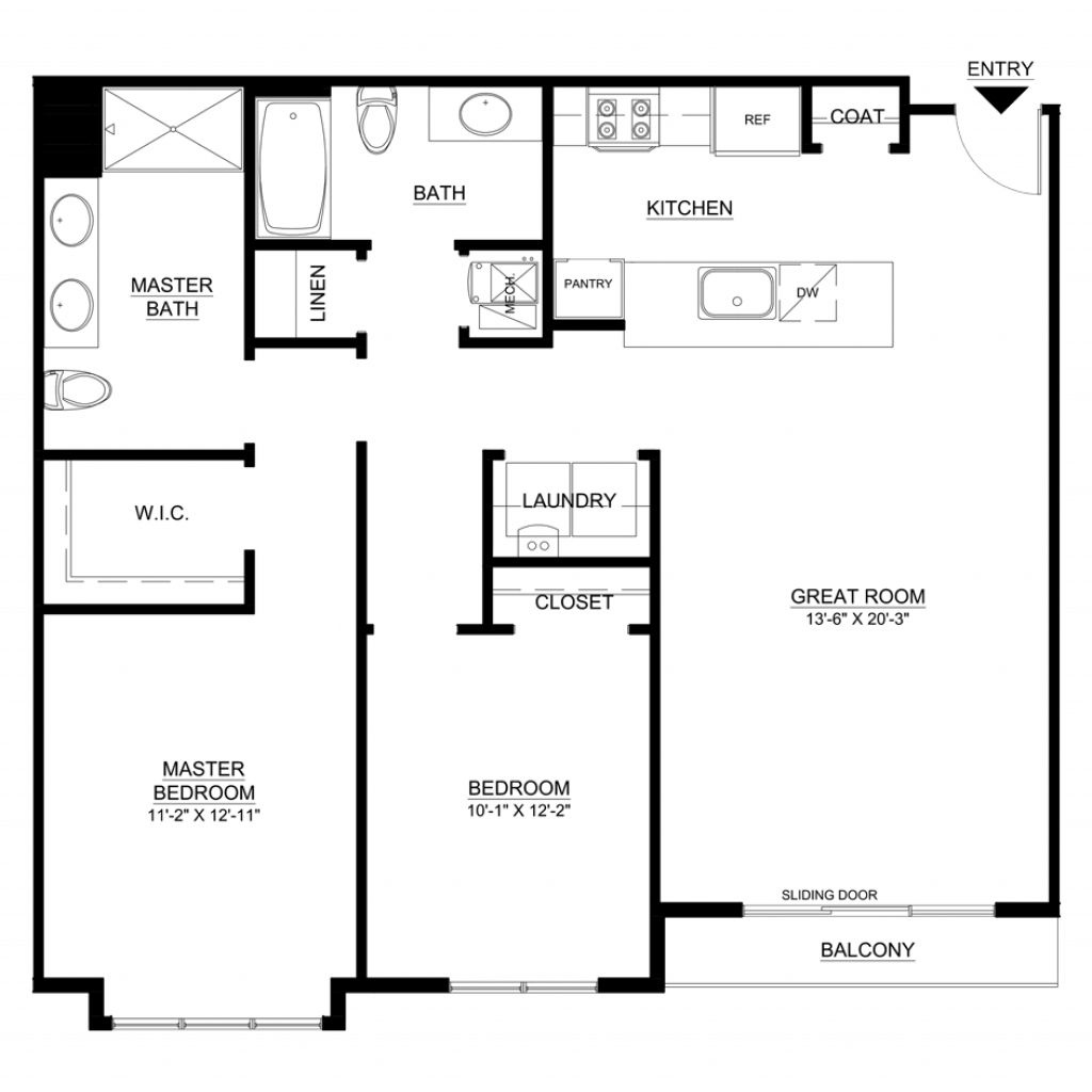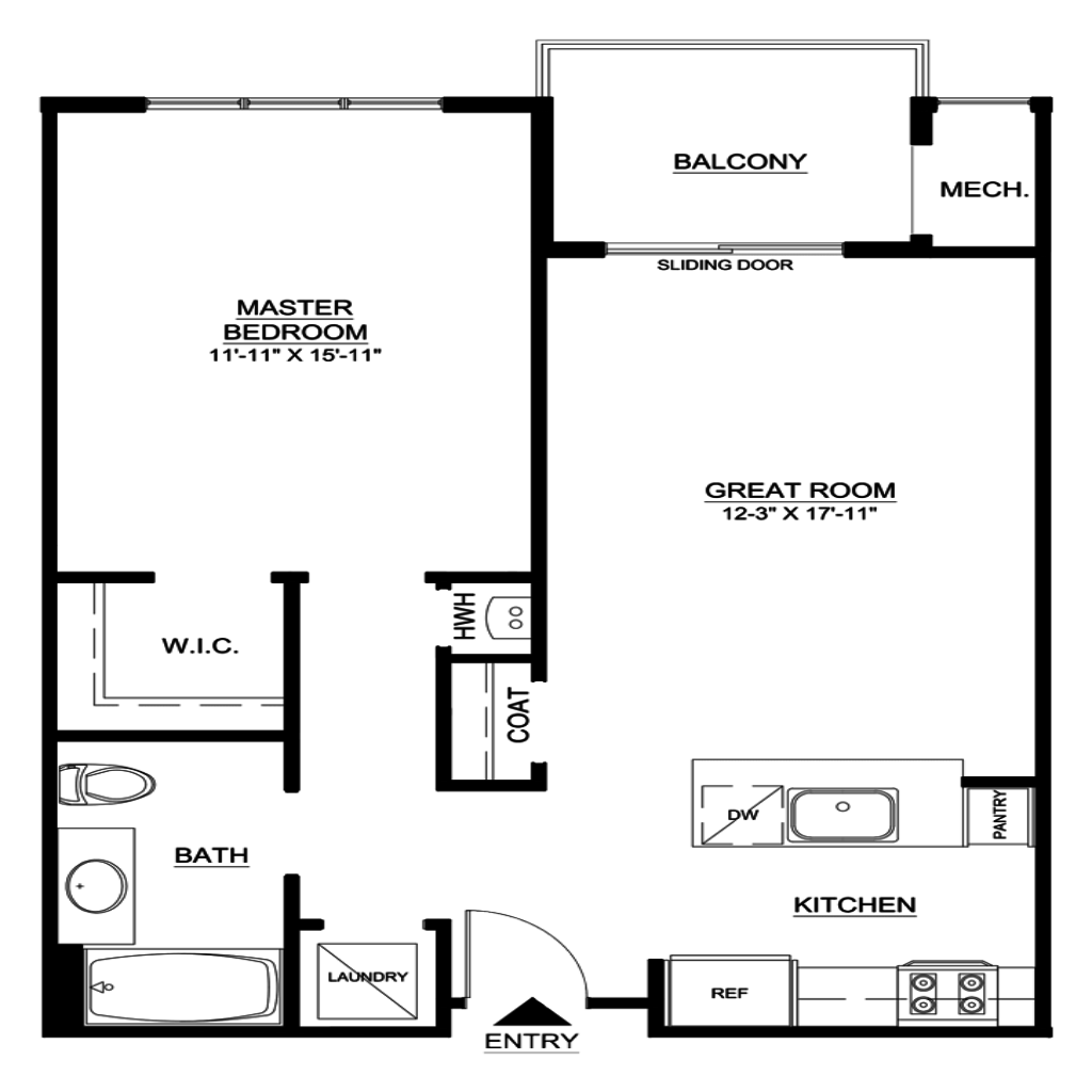 1 Bedroom, 1 Bath • 790 Sq. Ft.Print Floorplan