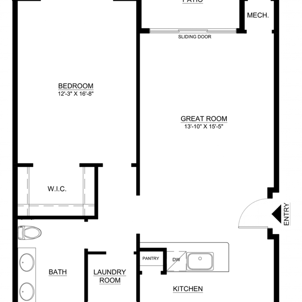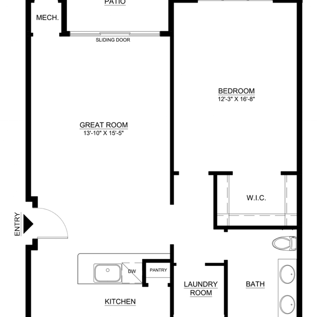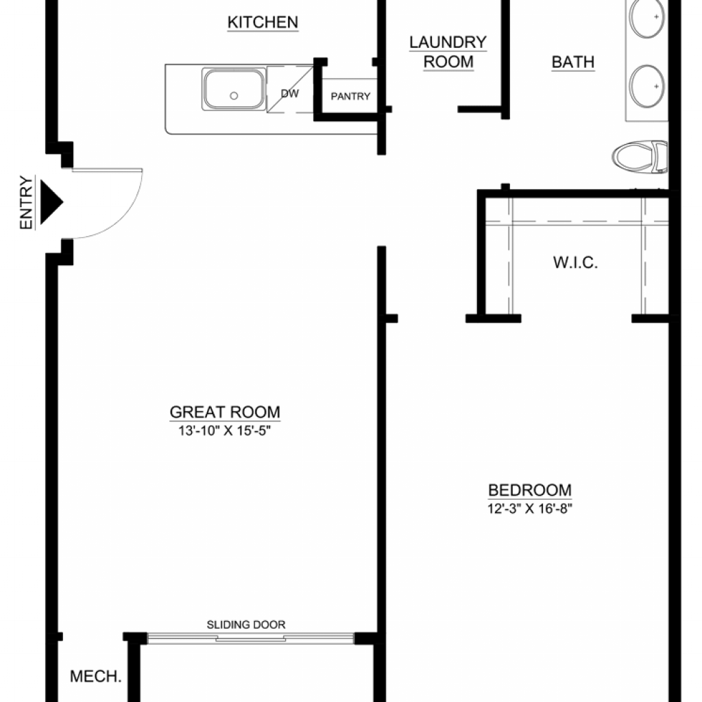 1 Bedroom, 1 Bath • 848 Sq. Ft.