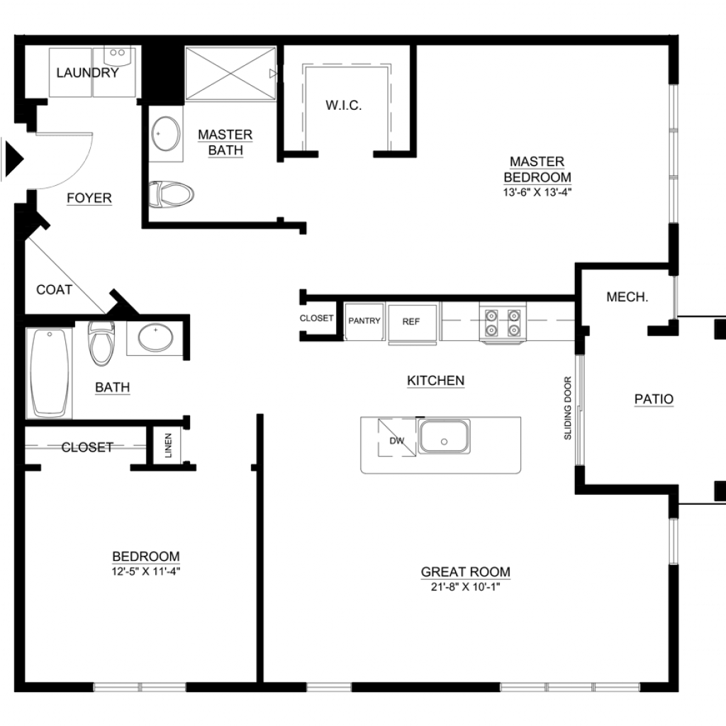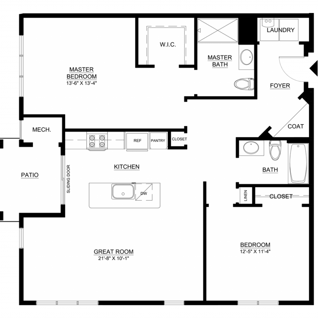 2 Bedroom, 2 Bath • 1,105 Sq. Ft.